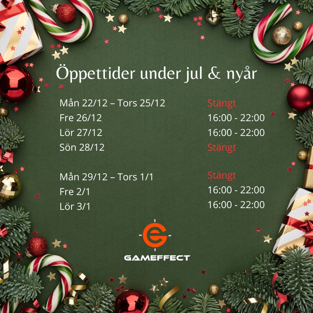 Våra öppettider i mellandagarna Stängt: söndag–torsdag Öppet: fredag & lördag kl. 16.00–22.00 För exakta datum och tider hänvisar vi till bilden ovan. Vi önskar alla våra besökare en riktigt god jul och ett gott nytt år.Hoppas vi ses i mellandagarna.