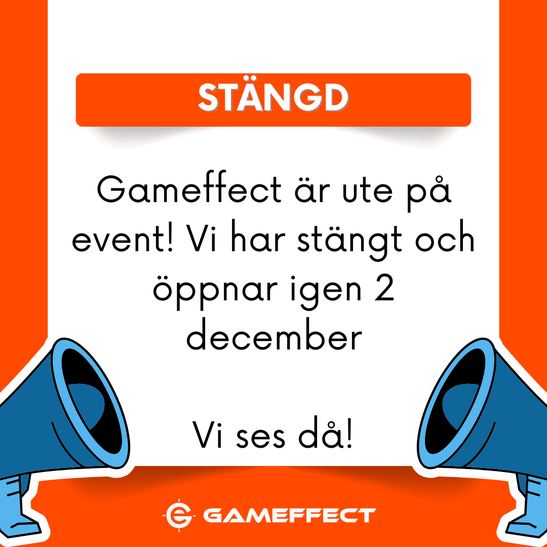 Vi håller tillfälligt stängt eftersom vi är på DreamHack.Vi öppnar igen den 2 december.